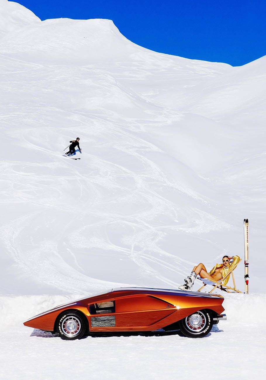 “APRES!” was shot high on the infamous Bernina pass in the Swiss alps this image is a must have for both the alpine and classic car enthusiast! Featuring the iconic Lancia Stratos Zero, this one off prototype built in 1970 is renowned for shaping the design language of the luxury car industry since its conception. This here was the original!
