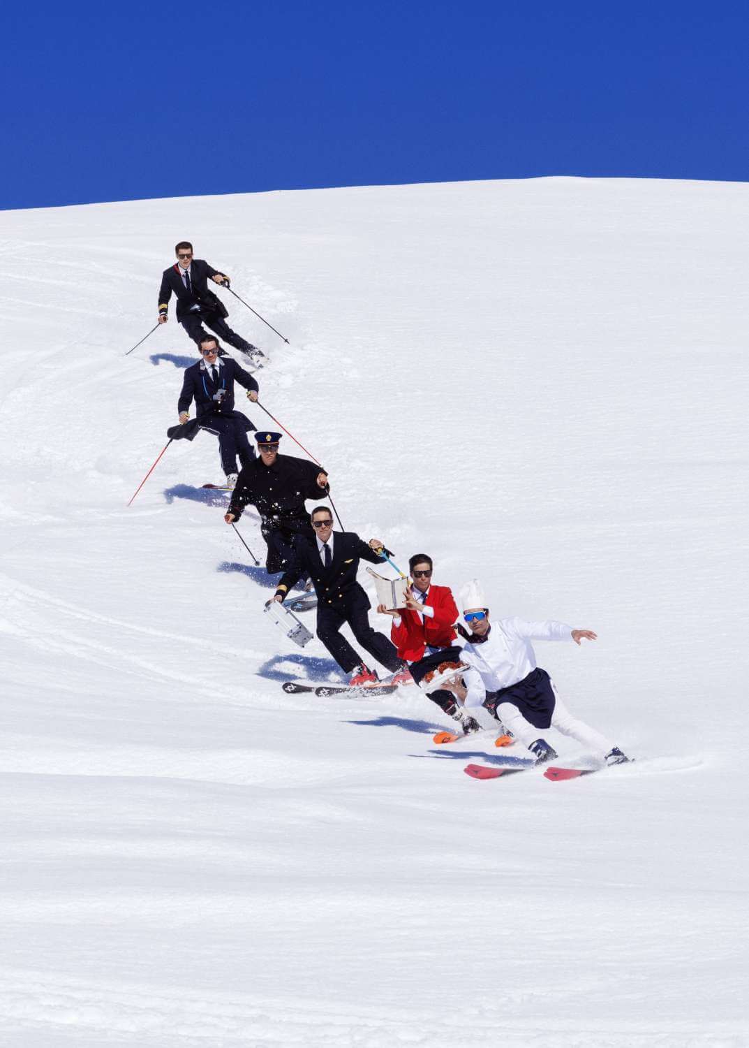 A heartfelt tribute to the real heroes of the mountain. To the pilots who navigate hazardous conditions and icy runways to ensure their clients’ gulfstream jets land locally at Samedan. The ever-welcoming hotel porters who endure freezing temperatures out front. The Chefs who work 20-hour shifts ensuring the glitzy galas and banquets are on point. To the handsome waiters who haul magnums of champagne across sun drenched terraces and up mountains.