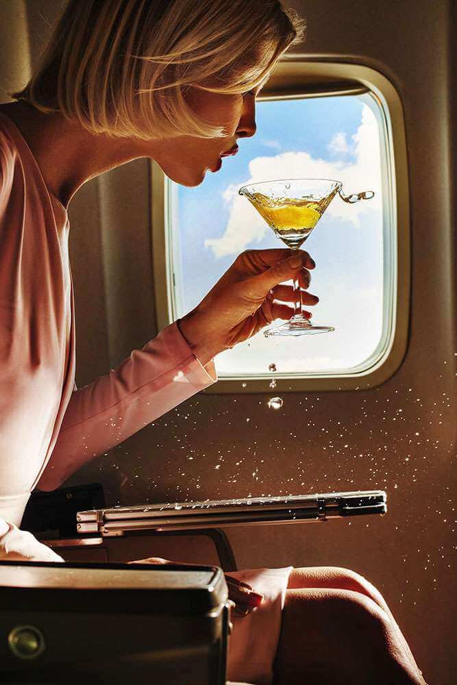 When life knocks her sideways mid-flight, she manages it- with a twist. This lady is a professional, a drinker, a flyer, a mover and shaker, her hand poised to receive the goods. When her world of luxury is rocked by an unexpected rough patch, she goes with the flow. Filtered through the rays of the afternoon sun at 30,000 feet, and a sprinkle of 190-proof alcohol, a study of the woman who takes what life throws at her and asks for more.
